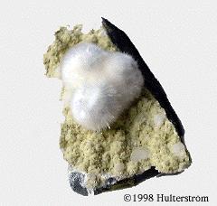 | Grön apophyllit och stilbit, Poona, Indien. ©2000 GeoNord. | Okenit och stilbit, Poona, Indien. ©2000 GeoNord. |
