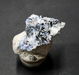 Storlek: 2,5x2,5cm. Finns att köpa på Scandinavian Minerals.Carletonit tillhör apophyllit gruppen av mineral med kemisk formel.: KNa4Ca4Si8O18(CO3)4(OH,F) · H2O. Det är extremt sällsynt med vacker blå färg. Den mest kända fyndigheten finns i Poudrette gruvan, Mont Saint-Hilaire, Québec, Canada.