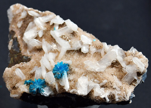 Cavansite med Stilbitkristaller, Wagholi Mines, Pune, India. Storlek: 8x5cm.