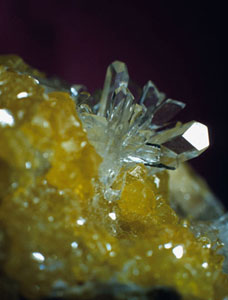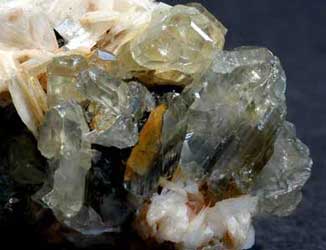 Cerussitkristaller med baryt, Imilchit, Marocko. Collection & photo ©2004 Geonord.