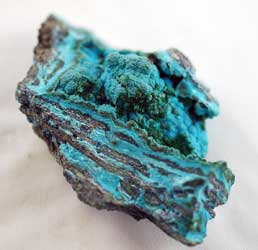 Chrysocolla, malakit, cornetit, Kalukuluku, Congo. Storlek 4x2cm. Collection & photo ©2001 Geonord.