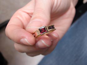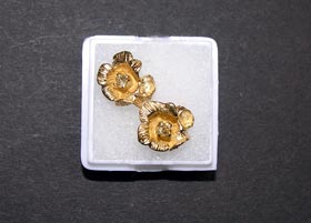 Några kursarbeten 2004 Några kursarbeten 2004 Här två stift lödda till två guldtackor á 1 gram och är nu åter användbara som örhängen. Stilstudie med tillskärning 0.6mm tunna skivor av gjutvax som monteras samman. En gammal vigselring som gjorts om till ett smycke av högt värde och kvalité. Lika spännande varje gång man gjuter. Räckte guldet? Den här gången gick det bra. Några kursarbeten 2005 Några kursarbeten 2005 Alkottar går alldeles utmärkt att bädda in och gjuta upp i silver och guld. Här en annorlunda design i silver som senare skall få en slipad sten inmonterad. En ljusblå akvamarin monterad till gammal guldring som nu åter kan användas. En Tolkienring och apa i guld. Båda har kopierats från billig förlaga. Skrotguld. Några kursarbeten 2005 Några kursarbeten 2005 Några kursarbeten 2006 En massiv fantasiring i guld samt Tolkienringen på plats. Två örhängen i guld med två facettslipade kubic zirconer i centrum. En stor klackring med mönster från billig förlaga som kopierats och gjutits upp. Änglar i guld efter egen idé utskuret från 0,6mm vaxplatta med tecknad förlaga.