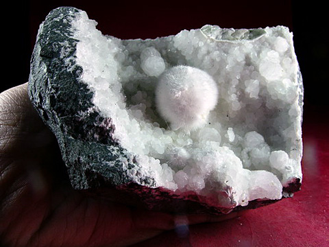 Kinesiska mineralförsäjare dränker marknaden med falska mineral. Ett bra exempel är Okenit från Indien som behandlast kemiskt med färg och anges vara ett nytt mineral från Kina. Så är det inte. Hur man lyckats att begr änsa färgningen till just okenitkristallen är en gåta. Journalisten från Lapis har sett en del av processen i Kina. Man kan dock se att okenit kristallern är ofärgade ytterst på spetsarna. Fjärde bilden visar äkta okenit från författarens samlingar.