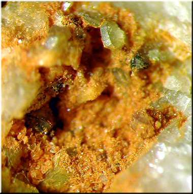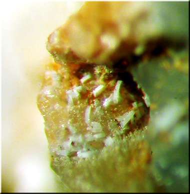 Okänt grönt mineral nr 3. Okända vita plattor nr 4. Troligen Wickmanit. Wickmani finns rapporterat från Varuträsk. Tidigare okänt mineral nr 5,som nu har identifierats som hingganit.
