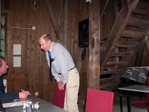 Geolog Arne Sundberg i samspråk med geolog Birger Filén, SGU. Geolog Arne Sundberg, SGU, går igenom förutsättningarna för årets Mineraljakt. Samling med fika vid vägen till Fäbolidens guldgruva. Samling med fika vid vägen till Fäbolidens guldgruva. Provbrytning av malm för analys av malmhalter. Obligatoriska besöket till varpen för malmprov.Lärartrion Eric Sjölund, Jan-Åke Unée och Torbjörn Grahn hade redan för 20 år sedan hittat block med guldhalt i Lyckseletrakten. Torbjörn Grahn har lämnat trion. Man har har lagt ner 100 miljoner kronor på prospektering och borrat upp totalt 27000 meter och till ett djup på ca 200 meter. Man räknar med att gruvan skall ha en livslängd på 5-9 år eller längre då man har hittat spår efter guld även i närområdena där Lappland Goldminers har liknande fyndigheter. Guldhalten är inte hög men malmbasen mycket stor och då man tänker bryta ovan jord blir brytningskostnaderna lägre än under jord.