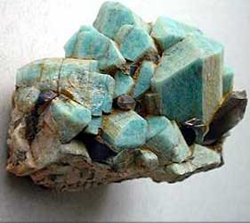 Amazonite/ smokey quartz, Old Gem Mine, Teller County, Colorado, USA. © 2005 Geonord Photo Archive of Minerals. 8x6cm. |