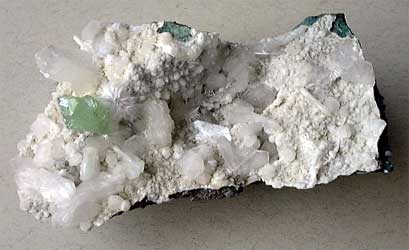 Green apophyllite,stilbite, artinite, Pashan Quarries, Mumbay, Indien. ©2006 Geonord Photo Archive of Minerals. For sale. Large srock. |