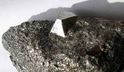 Arsenopyrite, Stollmine, Väster Silvbergsfältet, Dalarna, Sweden. Size of the crystal 5 mm. © 1999. Torbjörn Persson. |