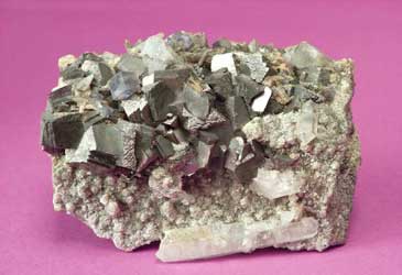 Arsenopyrite w. fluorite and quartz, Yao-Gang, Hunan, China. © 2009 Geonord Photo Archive of Minerals. 10,5x7 cm. |