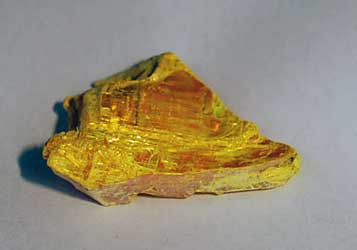 Auripigment, Senduchen mine, Eastern Yakuta Siberia, Russia. ©2005 Geonord Photo Archive of Minerals. 4x3 cm. Geonord has the Russian label. |