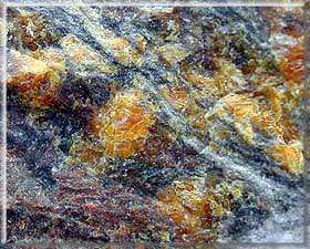 Beraunite with Strengite, Leveäniemi Mine, Svappavaara, Norrbotten, Sweden. © 1999 Geonord Photo Archive of Minerals. 4x3 cm |