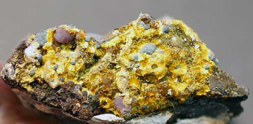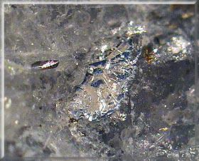 Calaverite, Enåsen, Hälsningland, Sweden. Size of the picture 2 mm. © 2001 Peter Bring. |