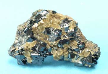 Cassiterite w. siderite, Viloco Mine, Loayza, La Paz, Bolivia. © 2001 Geonord Photo Archive of Minerals. 7x4 cm. |