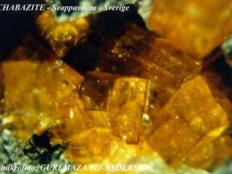 Amber coloured chabasite, Leveäniemi mine, Norrbotten, Sweden. Microphoto. © 1999 Guri Mazanti-Anderssen. |