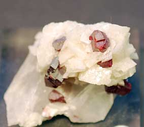 Cinnabar on Dolomite, Tong Ren Mine, Gui Zhou Province, China. © 1991 Geonord Photo Archive of Minerals. 3x2,5 cm. |