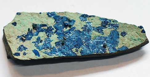Covelline, Rudna Mine, Lubin, Poland. ©1995 Geonord Photo Archive of Minerals. Size 4x5 cm. The specimen comes from the Museum Ziemi, Warzawa, Poland. With original label and for sale. |