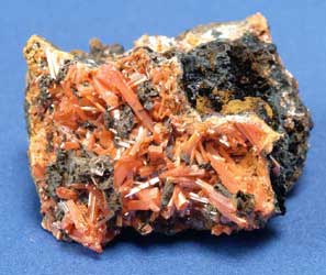 Crocoite Red Lead Mine, Adelaide, Dundas, Tasmania, Australia. ©2007 Geonord Photo Archive of Minerals. 5x3 cm |