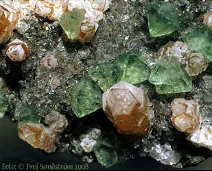 Fluorite, Skinnerstatorp, Sweden. Size of the picture 2 cm © 1999 Frej Sandström |
