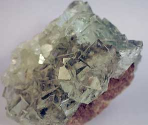 Fluorite, Gladsax, Skåne, Sweden. ©1995 Geonord Photo Archive of Minerals. 5x4 cm. Light green. SOLD. |
