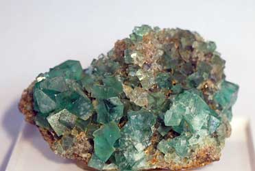 Fluorite, Weardale, County Durham, UK. ©2004 Geonord Photo Archive of Minerals. 4x4 cm. Dark green. |