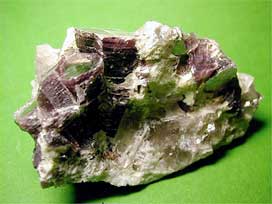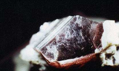 Lepidolite crystal, Varuträsk quarry, Västerbotten, Sweden. Size of the picture 1,5 cm © 1998 Photo: A K Hulterström. |