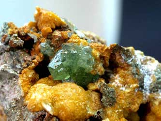 Libethenite, Miguel Vacas Mine, Conceição, Vila Viçosa Portugal, ©2006 Geonord Photo Archive of Minerals. Size 3x4 cm. |
