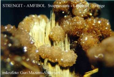 Strengite on amphibole, Leveäniemi Mine, Svappavaara, Norrbotten, Sweden. Microphoto © 1999 Guri Mazanti-Anderssen. |