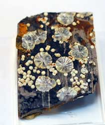 Witherite, Cave-In-Rock, Illinois, USA. ©1988 Geonord Photo Archive of Minerals. The other side of the large specimen. Size 7x6 cm. |