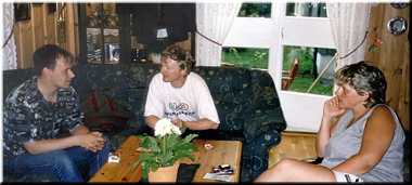 Hemma hos vår guide i Dalen, Jan Andersen i mitten.Tisdagen den 26/6 skulle vårt mineralletande starta, till en början i Telemarks och Aust-Agders fylke, som geologiskt hör till den Sydvästskandinaviska provinsen i den Baltiska skölden.