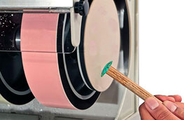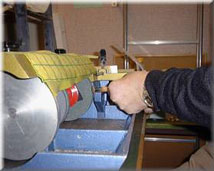 Linnelapp över sliphjulen Grovslipning och stänkskydd Polering på filttrissa med ceriumoxidFinns inte behållare för vatten kan du hänga en linnelapp eller duk strax ovanför sliphjulet så att den ligger i kontakt med hjulets periferi och fuktar sliphjulet.