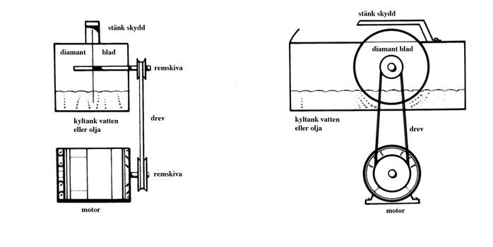 En diamantsåg består av en motor, sågklinga med sintrade diamanter och en behållare med olja eller vatten som skall kyla sågklingan och binda dammet. Bilden nedan visar en principskiss av en stensåg. Det finns skäroljor, men man bör välja vegetabilisk olja för motorsågar, som är miljövänligare och vattenlösligt. Oljan har den fördelen att den skyddar sågschassit samt klingan mot rost, vilket de billiga sågarna för klinker inte gör eftersom de är avsedda för vattenkylning.