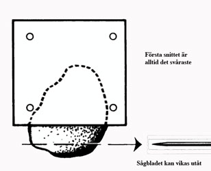 Det andra felet är att man under sågningen försöker ändra riktningen. Sågar man i trä går det ganska bra, men i sten är det omöjligt. Bladet kommer att bli skev och i princip oandvändbart. Bladstålet går inte att rikta om. Har man problem med en sten som är rund kan man enkelt göra en plan socker med hjälp av gips.
