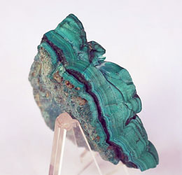 Malakit, Mashamba Mine, Shaba, Zaire. ©1997 Geonord. 4 cm tjock.Malakit Cu2+2(CO3)(OH)2