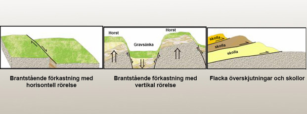 Överskjutning. En process där skivformade bergartspaket (skollor) skjuts över varandra. Överskjutningar sker särskilt vid kontinentkollisioner och leder inte sällan till att äldre bergarter hamnar ovanpå yngre, vilket är det omvända mot en normal lagerföljd. Termen används också för den överskjutna berggrunden. I Sverige finns överskjuten berggrund framför allt i den kaledoniska bergskedjan i fjällen, men också i urberget, till exempel i gränsområdet VärmlandDalsland.