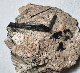 Ägirinkristall på fältspat, Bratthaugen, Saga II brottet, Norge. Storlek 53-50 mm.