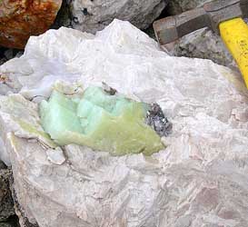 Adamite, var. Mangoan Adamite with the new mineral Lotharmeyerite, Ojuela Mine, Mapimi, Durango, Mexico. ©1998 Geonord Photo Archive of Minerals. Size 2x1,5 cm. |