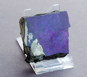 Covelline, Rudna Mine, Lubin, Poland. ©1995 Geonord Photo Archive of Minerals. Size 4x5 cm. The specimen comes from the Museum Ziemi, Warzawa, Poland. With original label and for sale. |