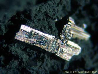 Calaverite, Enåsen, Hälsningland, Sweden. Size of the picture 2 mm. © 2001 Peter Bring. |