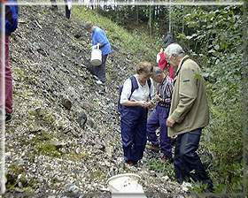 Dagens sista exkursionsplats blev Pottäng barytbrott. Här finns ett vattenfyllt dagbrott och en stor varphög där man kan hitta vacker baryt, flusspat, kalcit, pyrit och goethit. Innan man går ner till varpen måste man fråga om tillstånd från markägaren. Tiden gick fort den här dagen och för oss som kom från Umeå gällde det att tänka på återfärden. Men en liten biltur till Spikarna och en god middag skulle inte sitta helt fel. Ett stort tack till Sven och Sundsvallsföreningen för en fantastisk fin dag och vi hoppas vara välkomna att komma tillbaka för det finns många fler exkursionsplatser kvar att besöka i framtiden. |