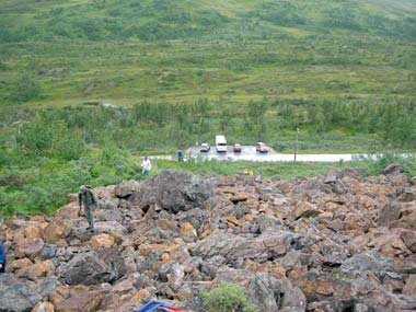 Lite längre ner efter vägen sprang alla ut på stenhögar från tunnelbygget under fjället och letade kyanit. Jag tror inte att någon åkte därifrån utan lite sten.