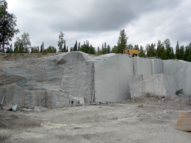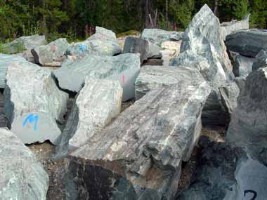 Färden gick vidare. Nu åkte vi mot Dikanäs och Stalon. Vid korpkullen kunde vi fynda grön mylonit. Det var stora block på flera ton vardera som låg upplagda vid parkeringsplatsen, men det var vid själva brytplatsen som vi hitta bra bitar att ta hem.