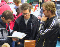 4 I samspråk över en stuff med fossiler. Foto: Håkan Palm.